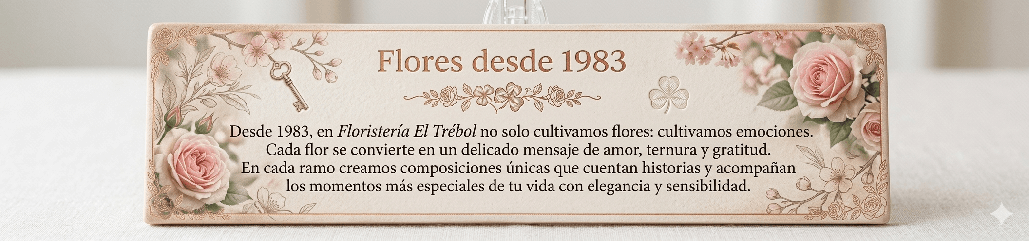 Desde 1983, en Floristería El Trébol no solo cultivamos flores: cultivamos emociones. Cada flor se convierte en un delicado mensaje de amor, ternura y gratitud. En cada ramo creamos composiciones únicas que cuentan historias y acompañan los momentos más especiales de tu vida con elegancia y sensibilidad.